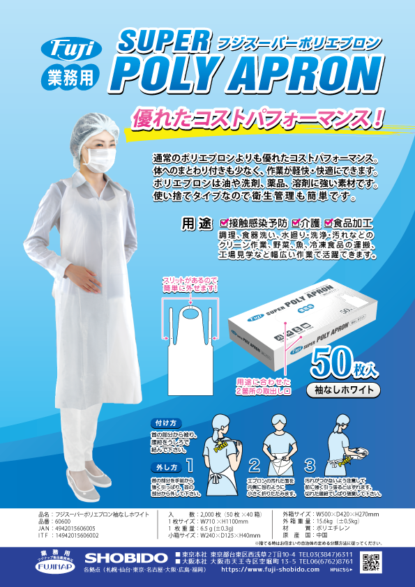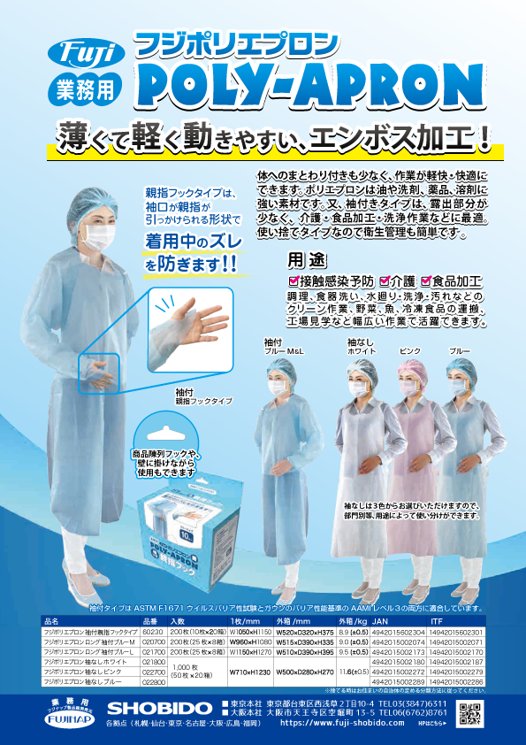 エプロン(紙、不織布、ポリ)・キャップ・腕シューズカバー・ホテル用品